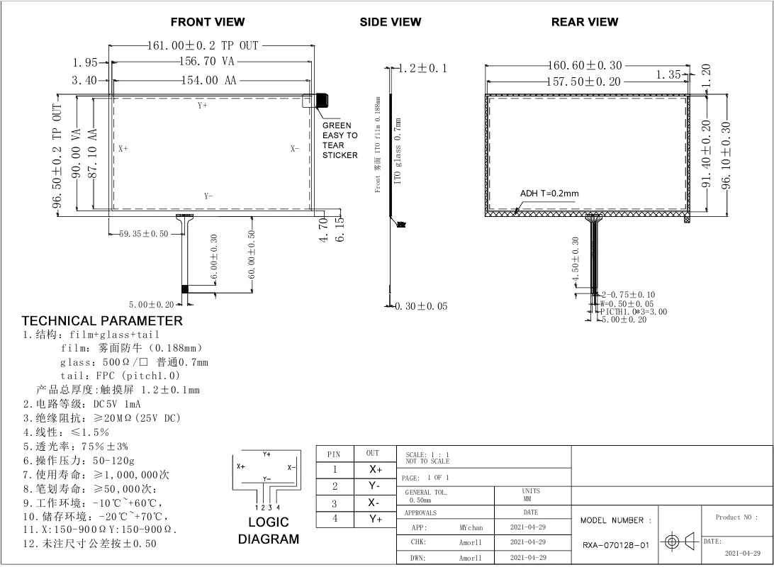 Tianfu 10.1 Kapasitive berøringsskjermmoduldetaljer