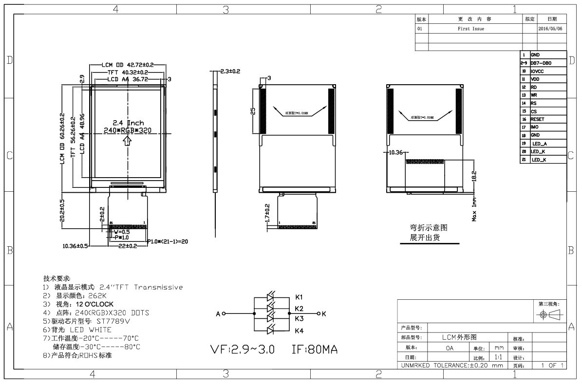 Parameter Q2424TC77118A7 (TFT-LCD med ST7789V driver IC)